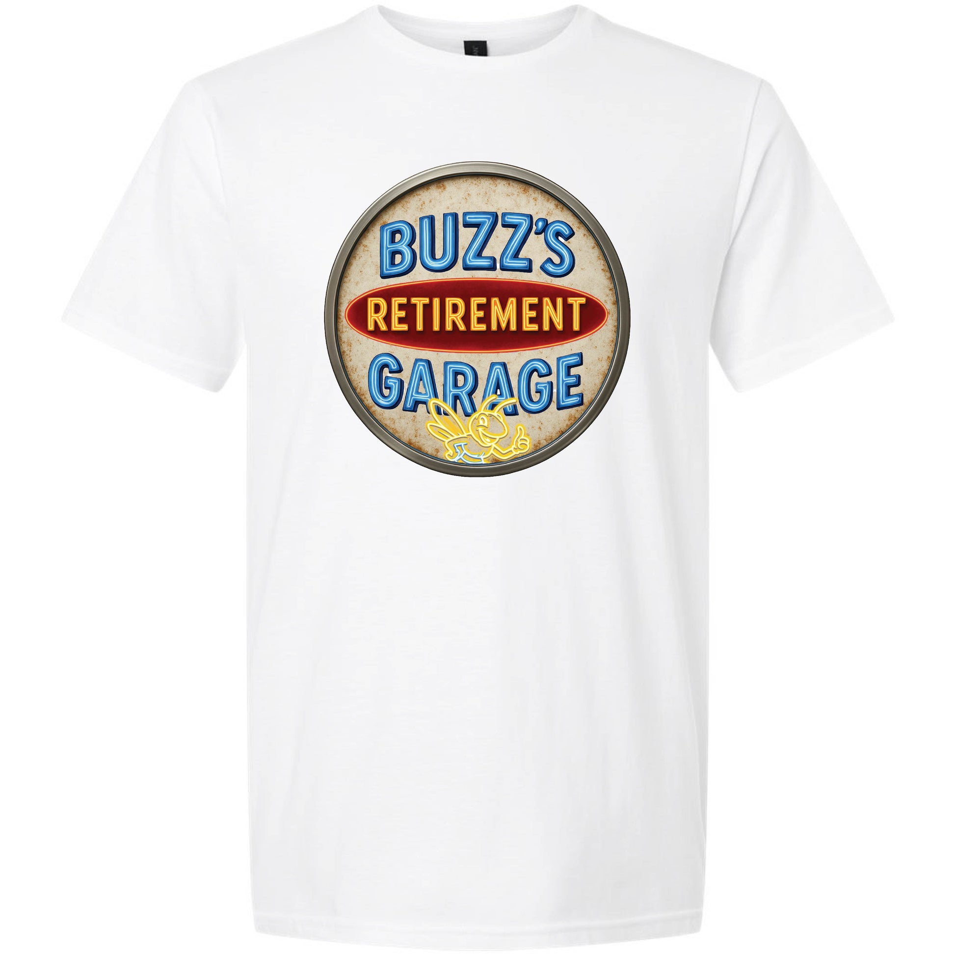 Roll in style and comfort with this super-soft, everyday tee featuring the Buzz’s Retirement Garage logo. It’s perfect for the garage, backyard BBQs, or just kicking back on the porch.